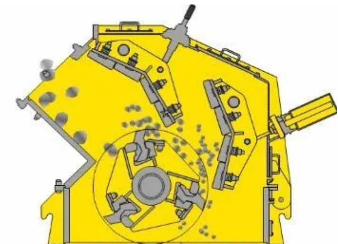 在處理物料含水量過(guò)大時(shí),反擊式破碎機的進(jìn)料溜槽和反擊板可配備加熱裝置,防止物料的粘結。反擊式破碎機不須配備底部篩板可有效防止堵塞現象。